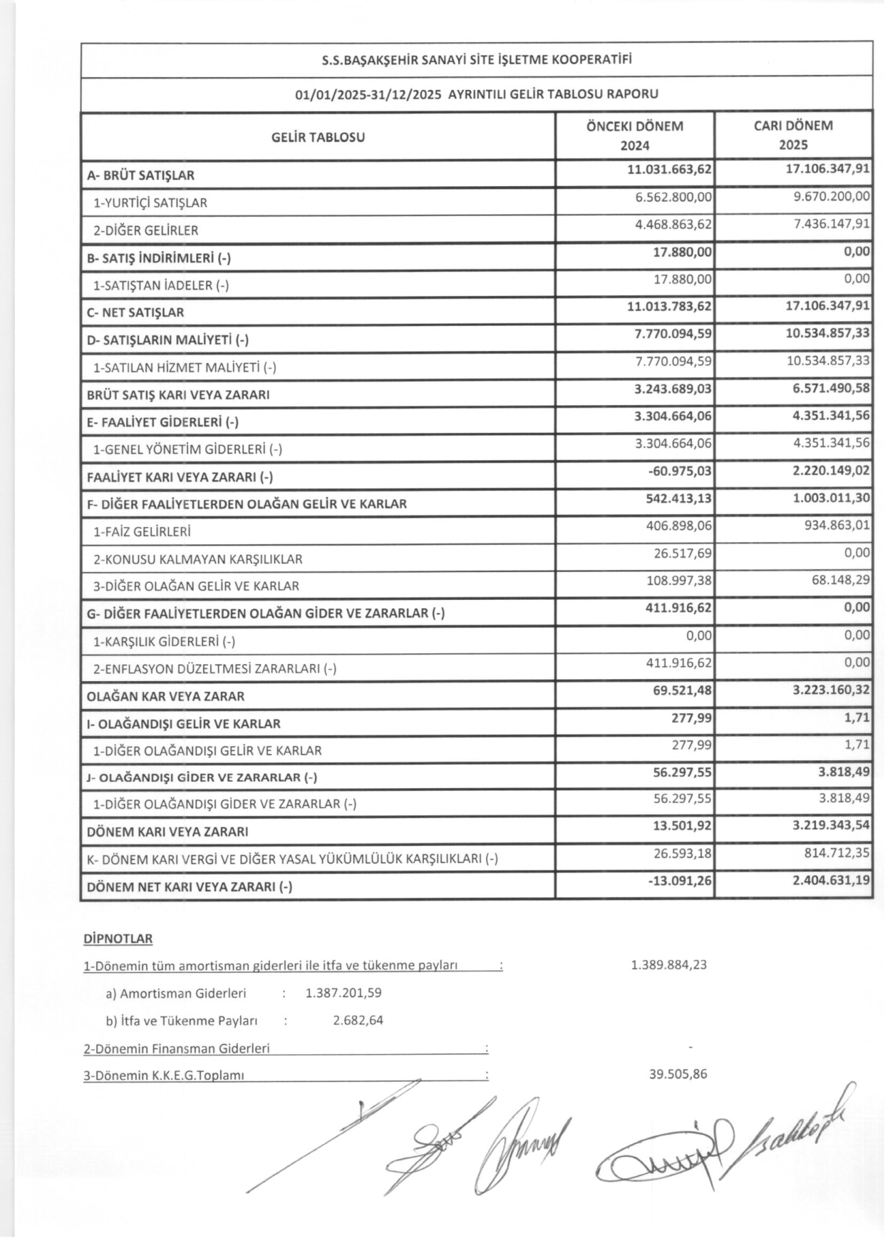 2025 Gelir Tablosu 25 Mart 2026, 17:26